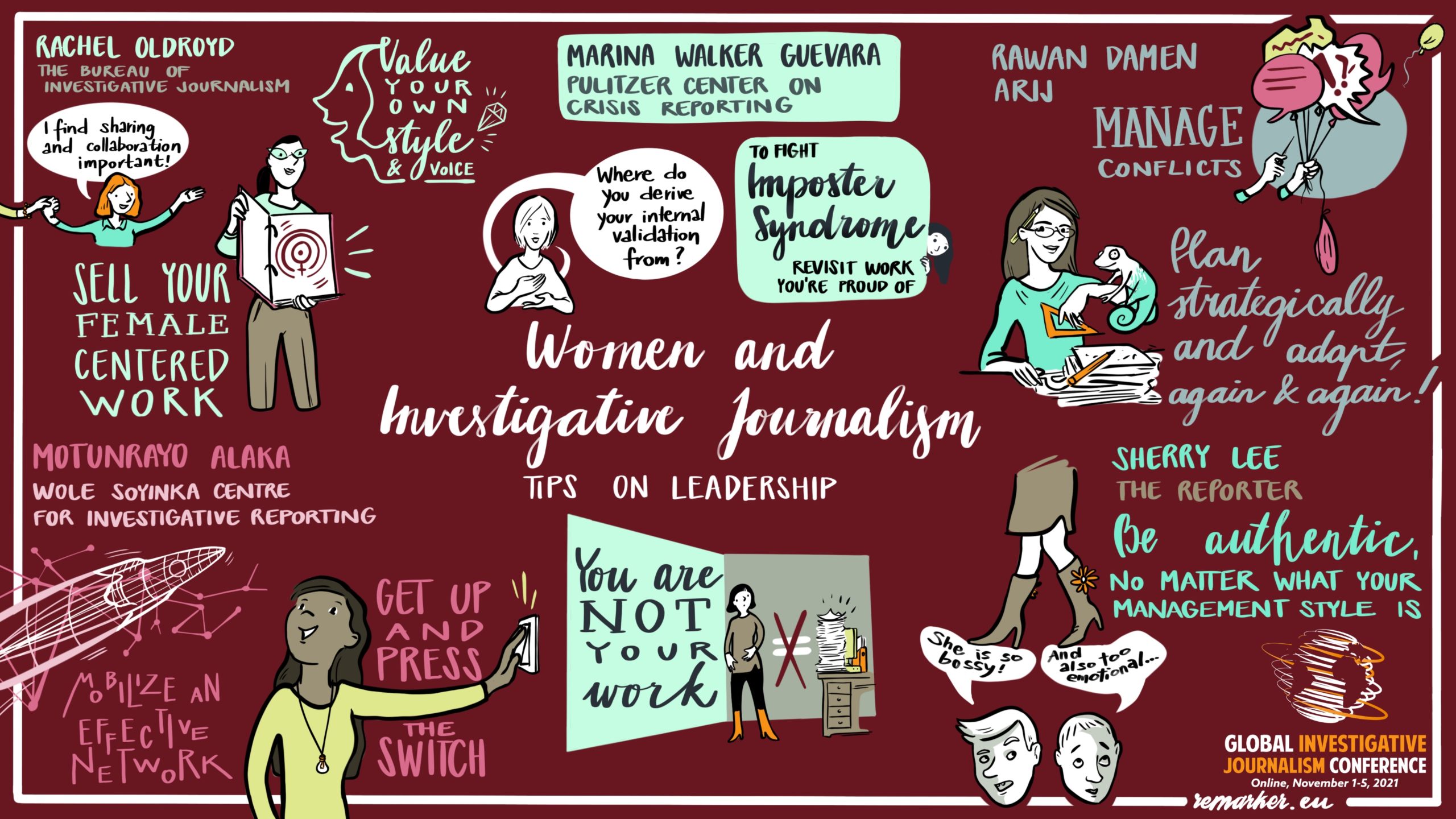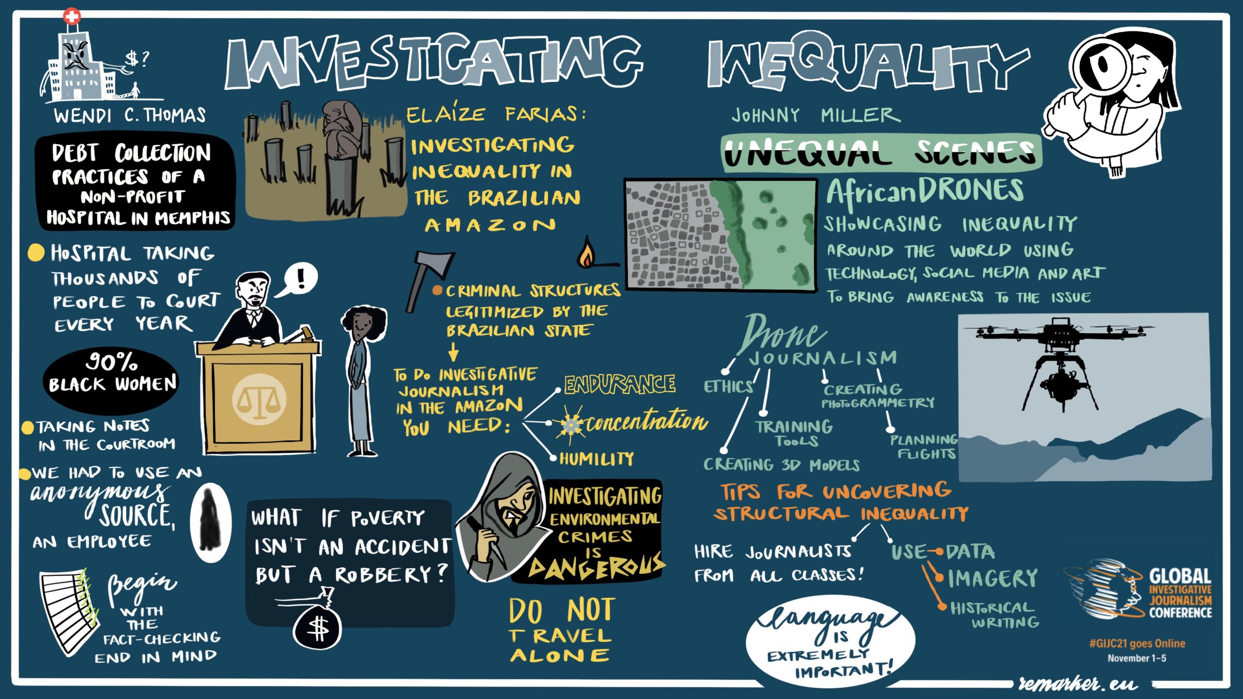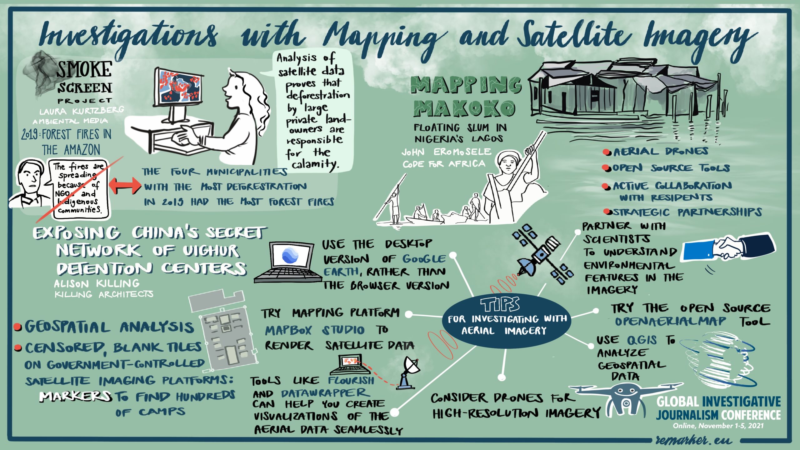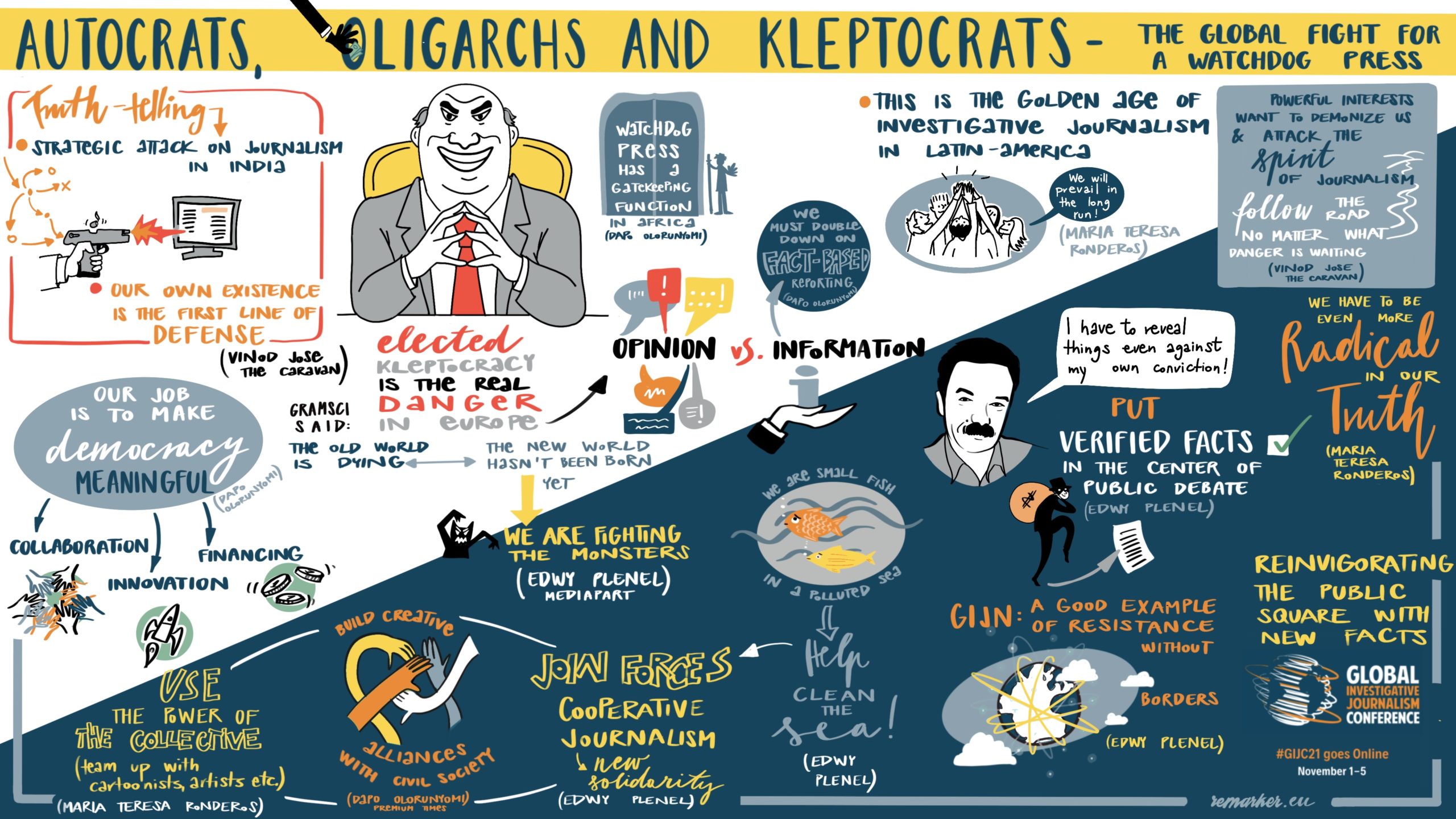 Our official #GIJC21 graphic recordings were created by Remarker and uploaded on GIJN’s Facebook page. You are welcome to republish these graphics for noncommercial purposes, with appropriate credit to GIJN and Remarker. But before using them, please ask for permission at hello@gijn.org. Access the graphics here.
